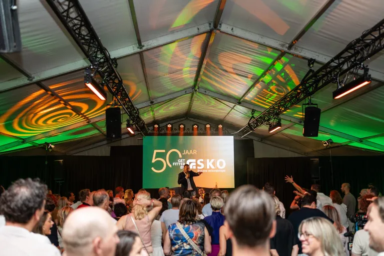 SKO vierde in juni zijn prachtige 50-jarig jubileum, een mijlpaal die vroeg om een bijzondere aanpak. In opdracht van SKO ontwikkelden wij een tweedaags jubileumconcept met drie verschillende evenementen: een relatiedag, een open dag en een personeelsfeest. Door het jubileum op te splitsen in drie momenten konden we elke doelgroep op een passende manier betrekken bij het verhaal van SKO. Elk onderdeel werd ontworpen met een eigen sfeer en doel, maar met dezelfde rode draad: laat zien wie SKO is, van verleden tot toekomst.