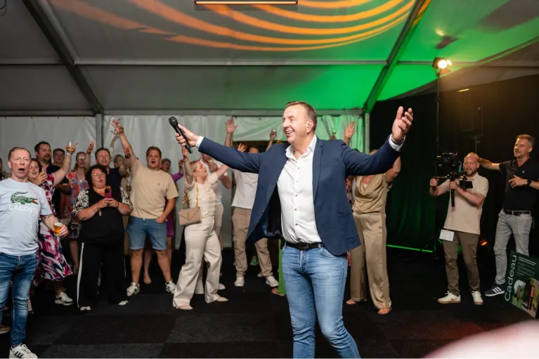 ’s Avonds was het tijd voor het personeelsfeest, een knallende afsluiter van het jubileum. Na een feestelijk ontvangst met prosecco volgde een avond vol heerlijk eten, cocktails, muziek en verrassingen. De bedrijfsfilm werd getoond, er werd geproost op 50 jaar SKO en de dansvloer kwam tot leven. De DJ zorgde voor een energieke sfeer waar de collega’s, familie en vrienden gedurende de avond van genoten. Als kers op de taart verscheen volkszanger Jannes onverwacht op het podium. Met zijn herkenbare hits en aanstekelijke energie stond iedereen binnen no-time mee te zingen en dansen. Een optreden dat het feest niet alleen compleet maakte, maar ook een geweldige afsluiter was van het jubileum.